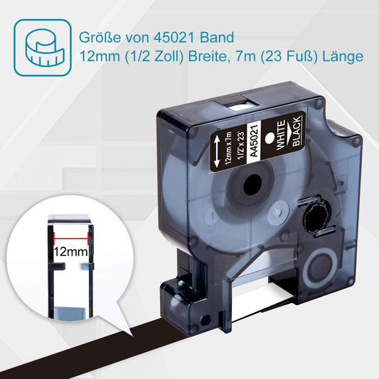 Nastro per Etichette Markurlife Compatibile con DYMO D1 12mm x 7m Bianco su Nero Cartuccia Nastri per Dymo LabelManager 160 280 220P 360 420P, LabelPoint 150 250 5Pz Compatibile DYMO 45021 S0720610