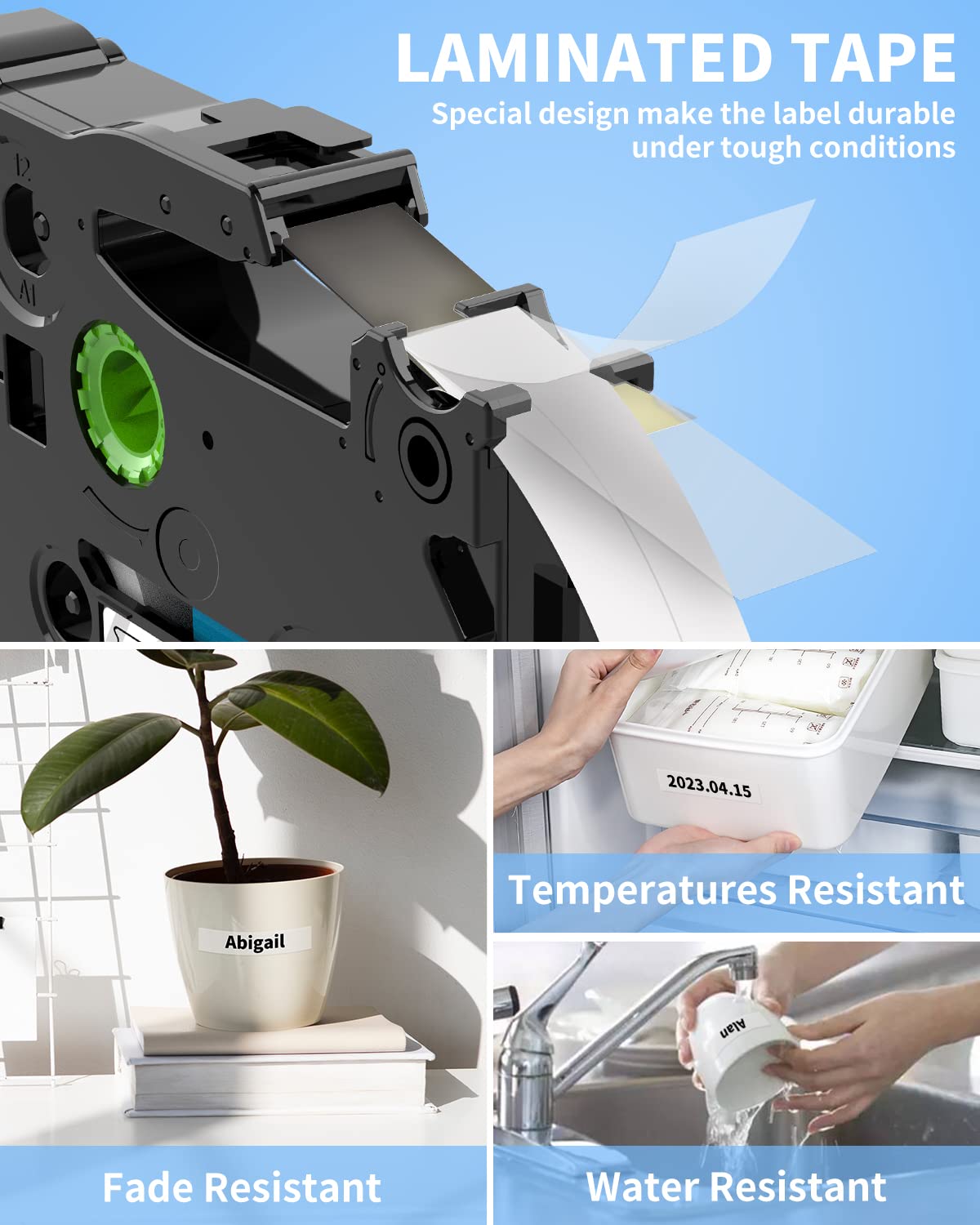 - [Etichettatrice applicazioni] Nastro per etichette tze 12mm compatibile con Brother Ptouch H105 H200 PT-H110/ PT-H100LB/ PT-H100R /PT-1005/PT-1000/ PT-1010/PT-1290/PT-1830/PT-D210 /PT-D400/PT-D450/PT-D600VP/PT-P700/PT-P750w/PT-H500LI/PT-E100/ PT-E110/PT-P700/ PT-P900W/P-Touch PT-P300BT PT-P710BT CUBE ecc.