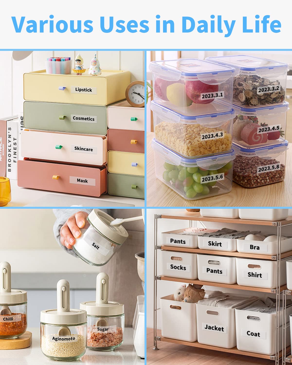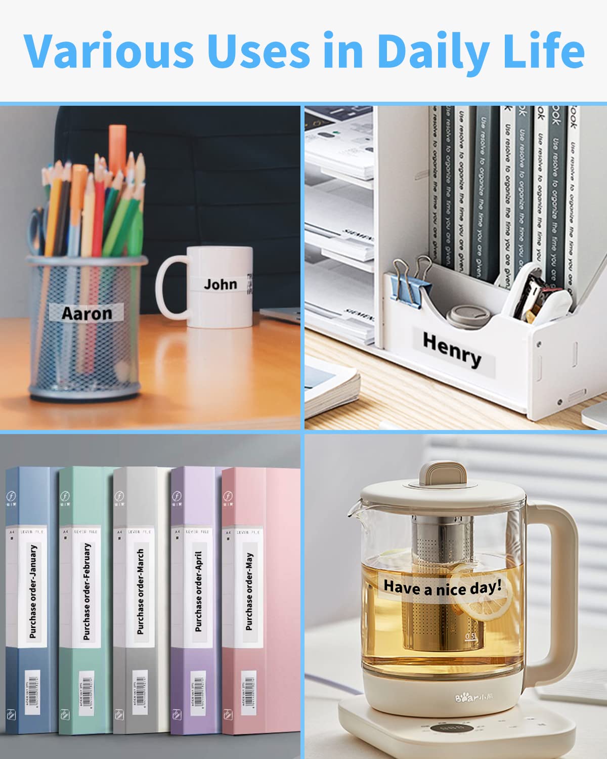 - [Ampiamente usato] Con la stampa a trasferimento termico, è facile stampare etichette in nastro chiare e attraenti per organizzare la tua vita. Ad esempio: casa, ufficio, scuola, negozio, fabbrica, ecc.