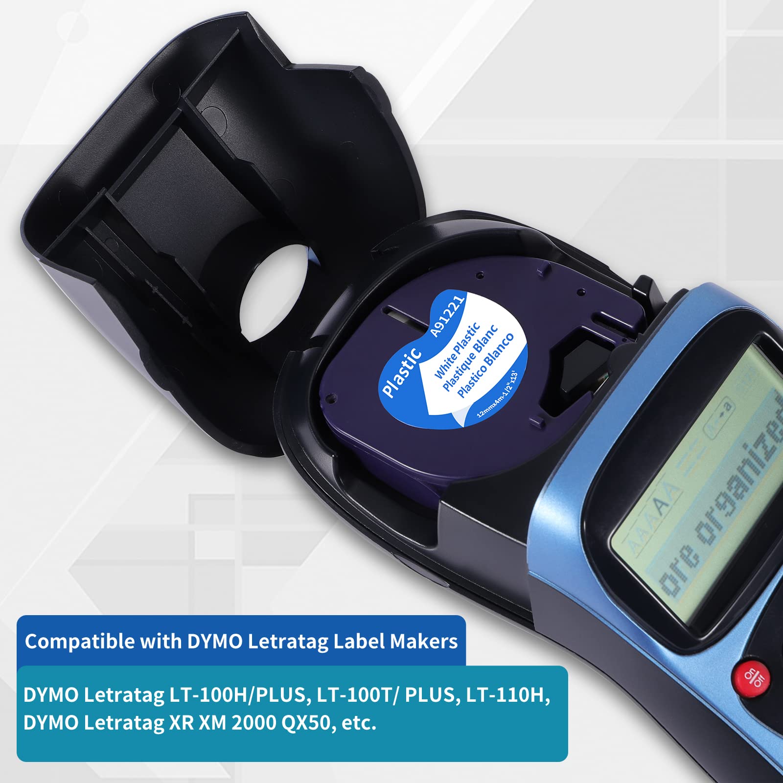Markurlife Etichette Compatibile In sostituzione di Nastro DYMO Letratag 12mm x 4m Plastic White 91201 S0721610 Cartucce per Dymo Etichettatrice LetraTag LT-100H LT-100T XR QX50, Nero su Bianco, 12Pz
