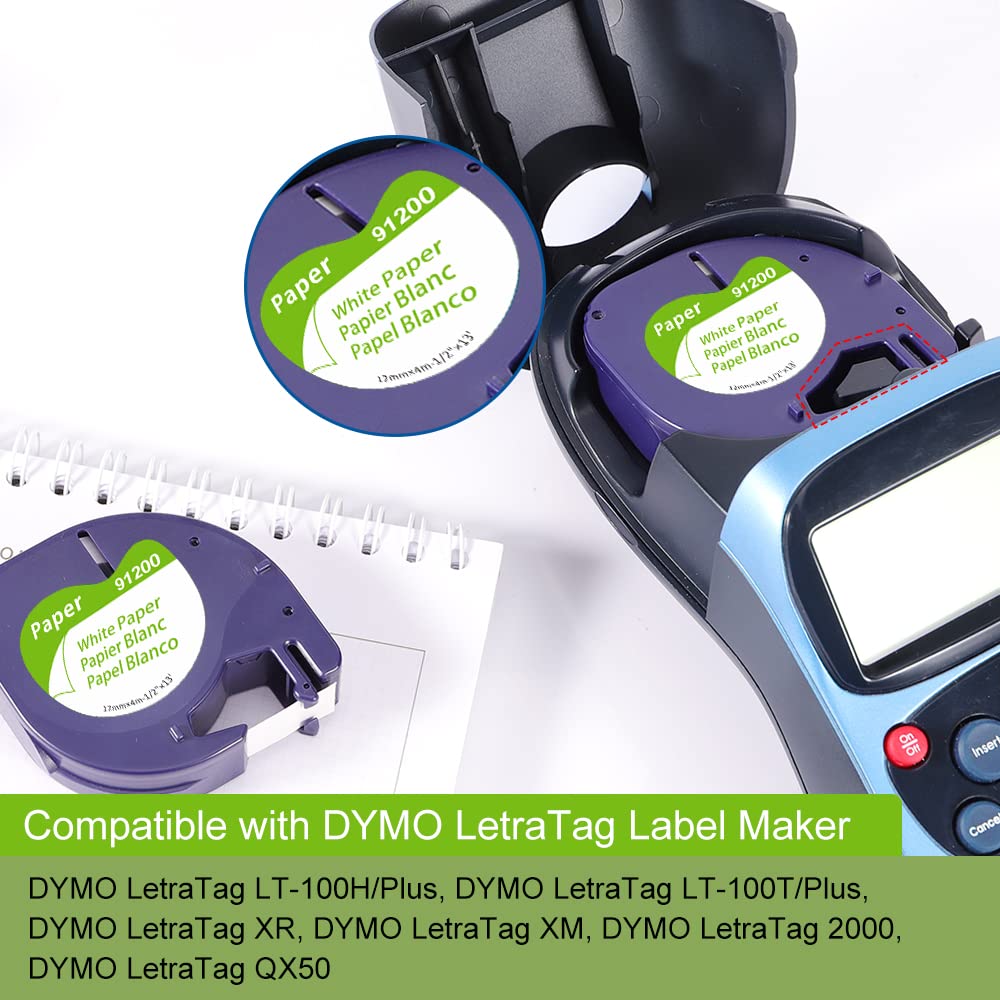 - [Paquet] 10 paquets compatible avec ruban étiquette DYMO letratag papier(Letratag 91220/ 10697/ S0721510), Taille: 12mm x 4m, Couleur: noir sur blanc, Matériau: ruban papier[Paquet] 10 paquets compatible avec ruban étiquette DYMO letratag papier(Letratag 91220/ 10697/ S0721510), Taille: 12mm x 4m, Couleur: noir sur blanc, Matériau: ruban papier