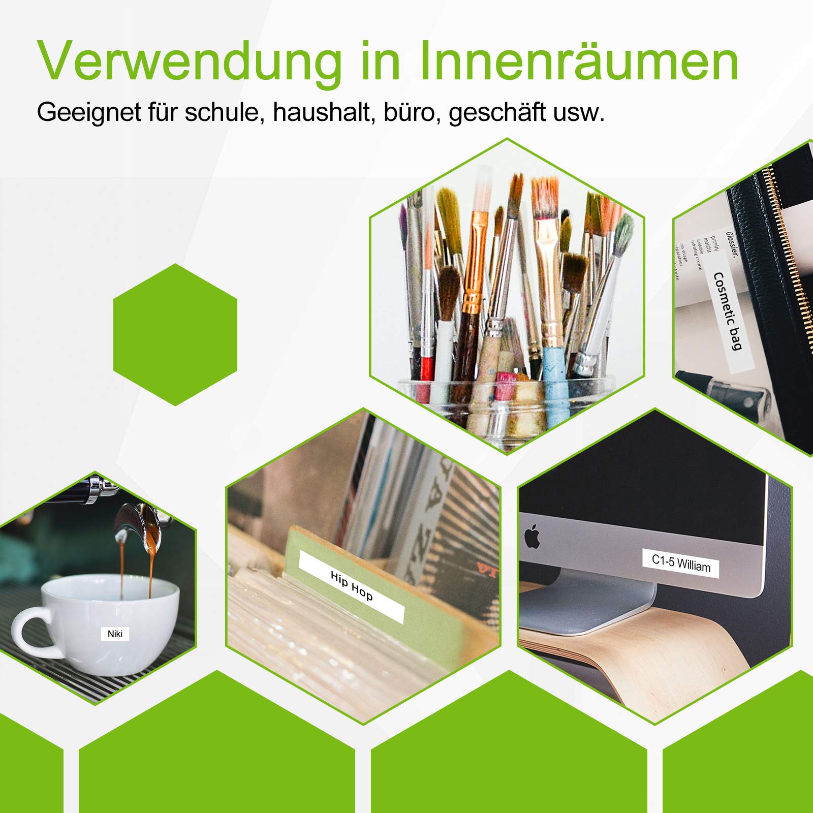 - [Utilisation en intérieur] Compatible avec etiquette DYMO letratag 12mm x 4m qui convient à une utilisation en intérieur. Convient pour l'école, la maison, le bureau et d'autres surfaces planes et particulièrement propres, notamment le plastique, le papier, le métal, le bois et le verre.
