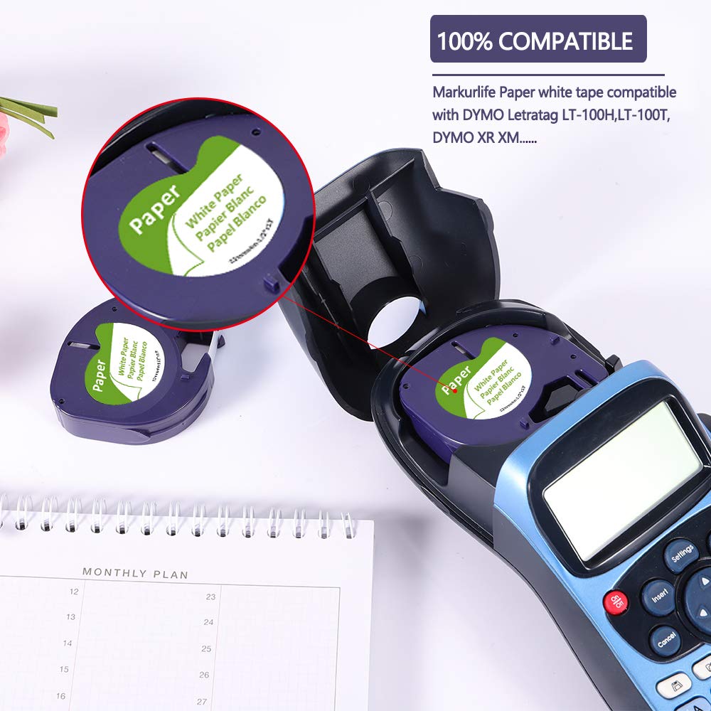- [Etiqueteuse appliquée] Markurlife LT ruban Compatible avec etiqueteuse DYMO LetraTag LT-100H/ Plus, LT-100T / Plus, LT-110T, LetraTag XR XM 2000 QX50,etc.
