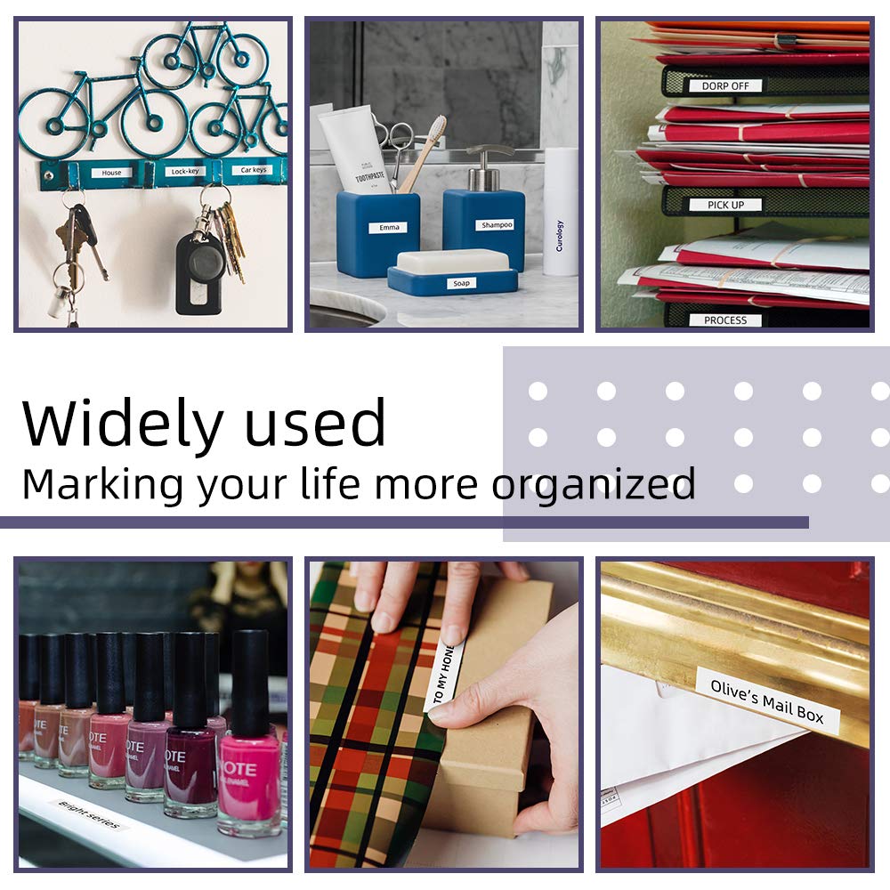 - [Utiliser à l'intérieur] Compatible avec étiquette dymo letratag 12mm x 4m pas un ruban d'étiquettes stratifié et utilise comme l'école, le bureau, restaurant, l'entrepôt, supermarché, etc.