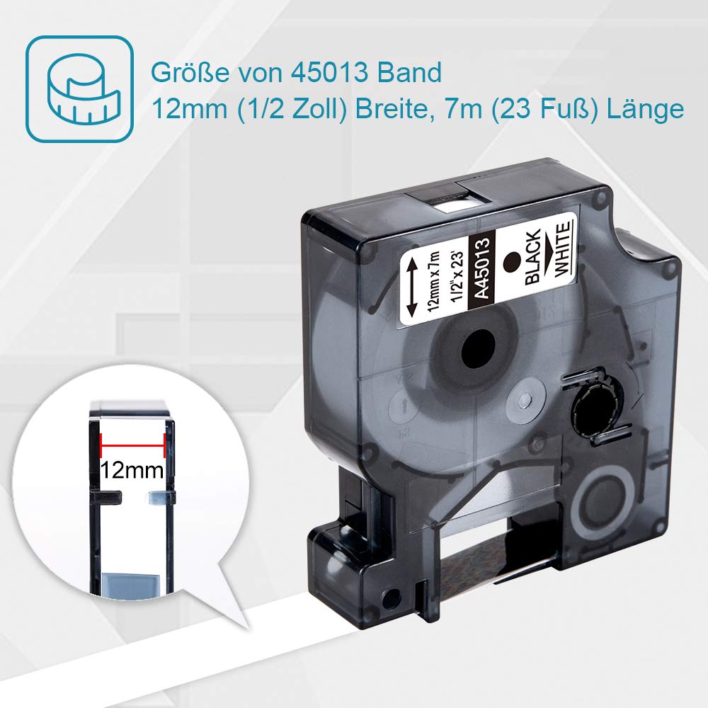 - Markurlife 45013s 12mm nastri Compatibile con Dymo D1 macchina originale: LabelManager 160, LabelManager 280, LabelManager 120P, LabelManager 210D, LabelManager 420p, Dymo LabelPoint 100, Dymo LabelPoint 150, Dymo LabelPoint 250, Dymo LabelWriter 450 DUO etc